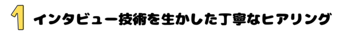 延べ約2,000名のインタビューをおこなったインタビューライターが丁寧にヒアリングをおこない、あなたの想いや経験をお伺いします。